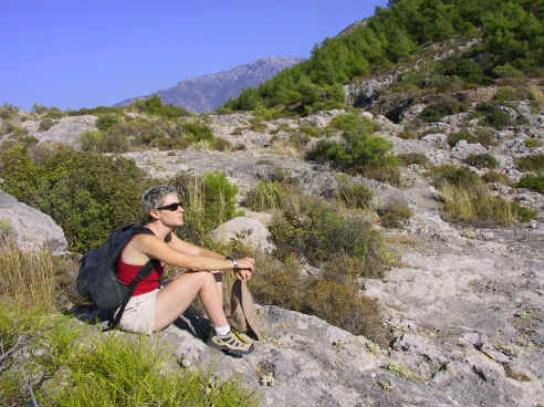 | Karyakoy - One of the ghost towns left vacant from the trade of Greek and Turkish populations after WWII. Over 2000 stone houses. We climbed over the top and down the other side to see what there was to see, it started getting dark very quickly, we had consumed all our water, and we had no flashlight. We almost went down to the sea to flag down a boat to take us to a town. |