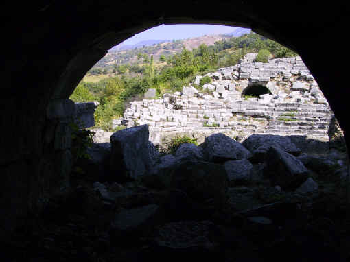 | Tlos – Rock cut tombs into the hillside. The site of yet another ancient city, complete with amphitheatre and sports arena. The pomegranates grow everywhere and they are very yummy. |